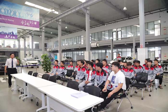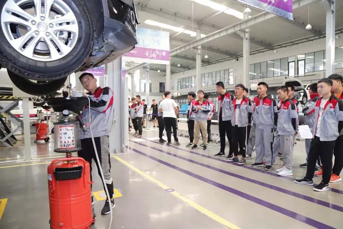 会后,在学训中心展示实训实践成果,主要是营销服务知识竞赛和汽车维修保养实际操作。