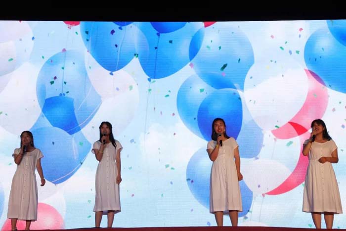 2019级同学们还在军训期间,艰苦的训练不仅磨练了同学们的意志,更提升了他们的精神气质。晚会上,同学们用丰富多彩的节目,肆意挥洒他们的激情,放飞心中的梦想,在最美的年纪绽放属于他们最灿烂的青春。舞蹈《青春之舞》,同学们用绚丽的舞步,踏出最美的青春节拍;歌曲《鼓楼》用年轻的声音,唱着人生的乐观与豁达;朗诵《感恩》,五位女生用细腻真挚的情感,感悟成长、学会感恩;一首《月半小夜曲》婉转动听,更引发了全场合唱。