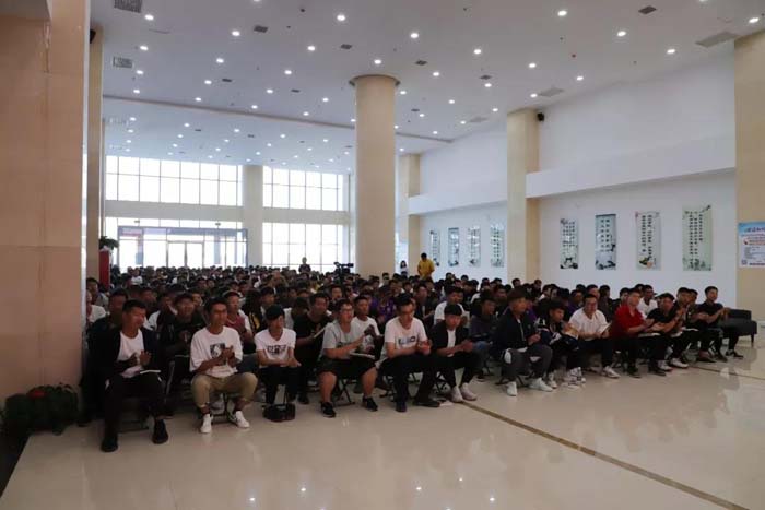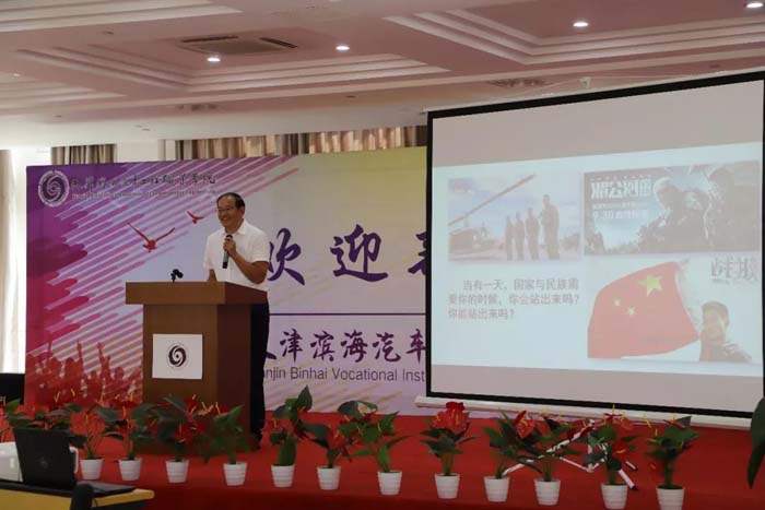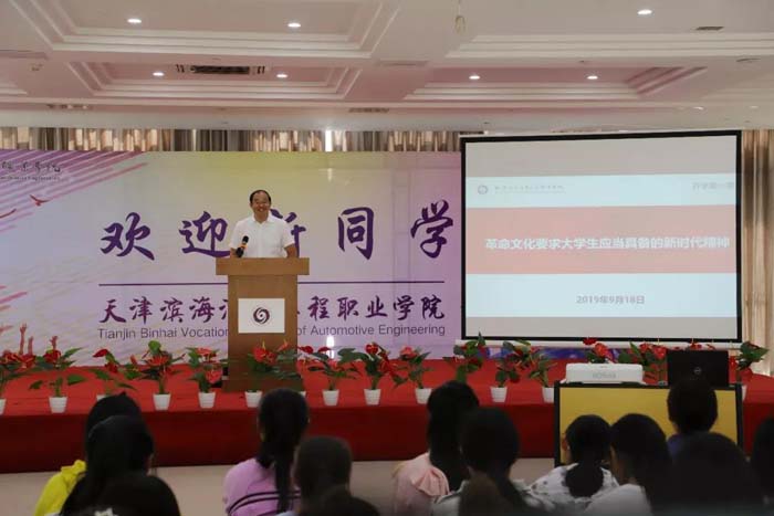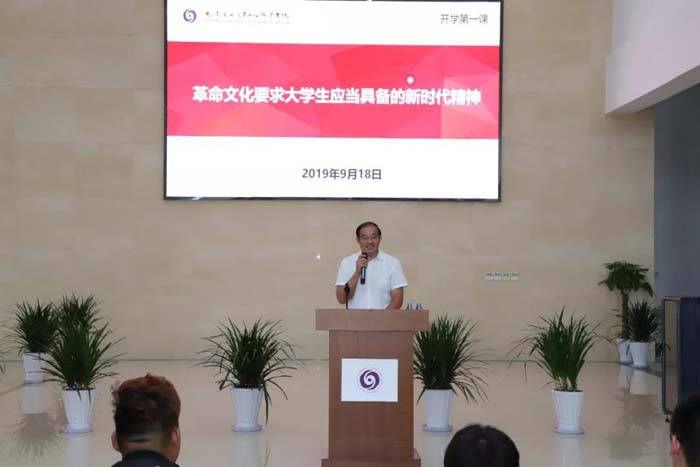 博彩平台职院开学第一课!9月18日下午,学院书记王桂锁分别在学院主校区和新校区,为2019级全体同学以爱国奋斗、使命担当为主题,讲述“革命文化要求大学生应当具备的新时代精神”,从“军训中蕴含的革命思想和新时代精神”、“革命文化与共产党人的初心和使命”和“新时代青年应当具备的精神”三个方面,回顾了中国共产党在带领全国人民走向民族复兴伟大历程中坚守的理想信念和初心使命,阐述了当代大学生的时代使命和责任担当。