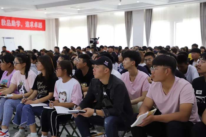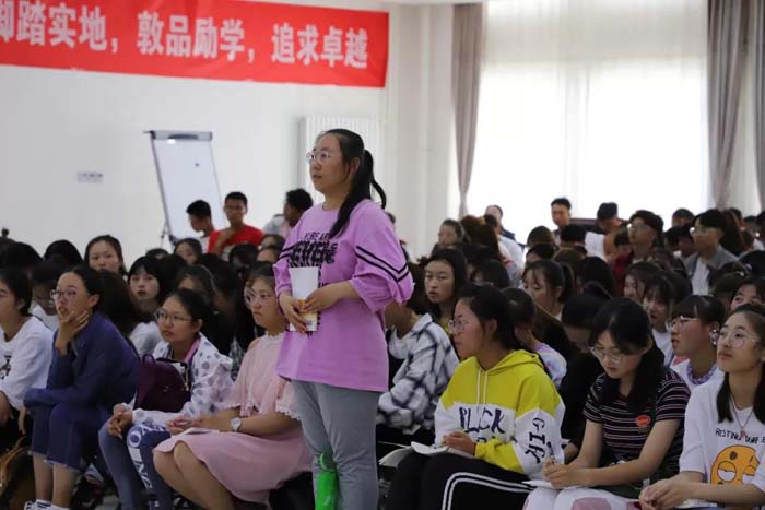 “青年兴则国家兴,青年强则国家强。青年一代有理想、有本领、有担当,国家就有前途,民族就有希望。”在谈到新时代青年应当具备的精神时,书记首先引用了习近平总书记在十九大报告中对年轻一代的寄语。通过讲述五四精神、张伯苓的爱国三问和习近平总书记在梁家河插队的知青故事,展望2025及“两个一百年”奋斗目标的光明前景,书记激励大家不仅要有健康的体魄、过硬的专业知识,更要具备良好的道德品质和健康的现代人格,牢固树立新思想,时刻牢记新使命,刻苦锤炼新本领,奋发展现新作为,勇担时代责任,肩负时代使命,努力成为担当民族复兴大任的时代新人!