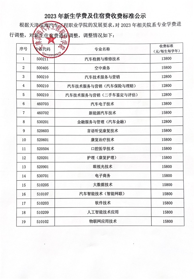 2023 年新生学费及住宿费收费标准公示
