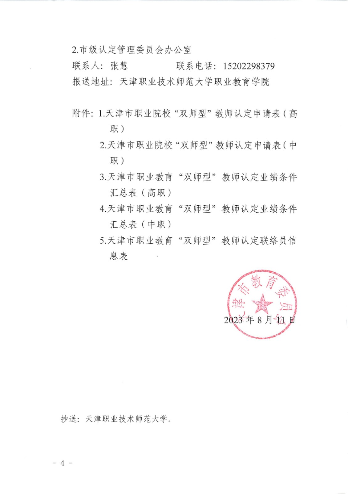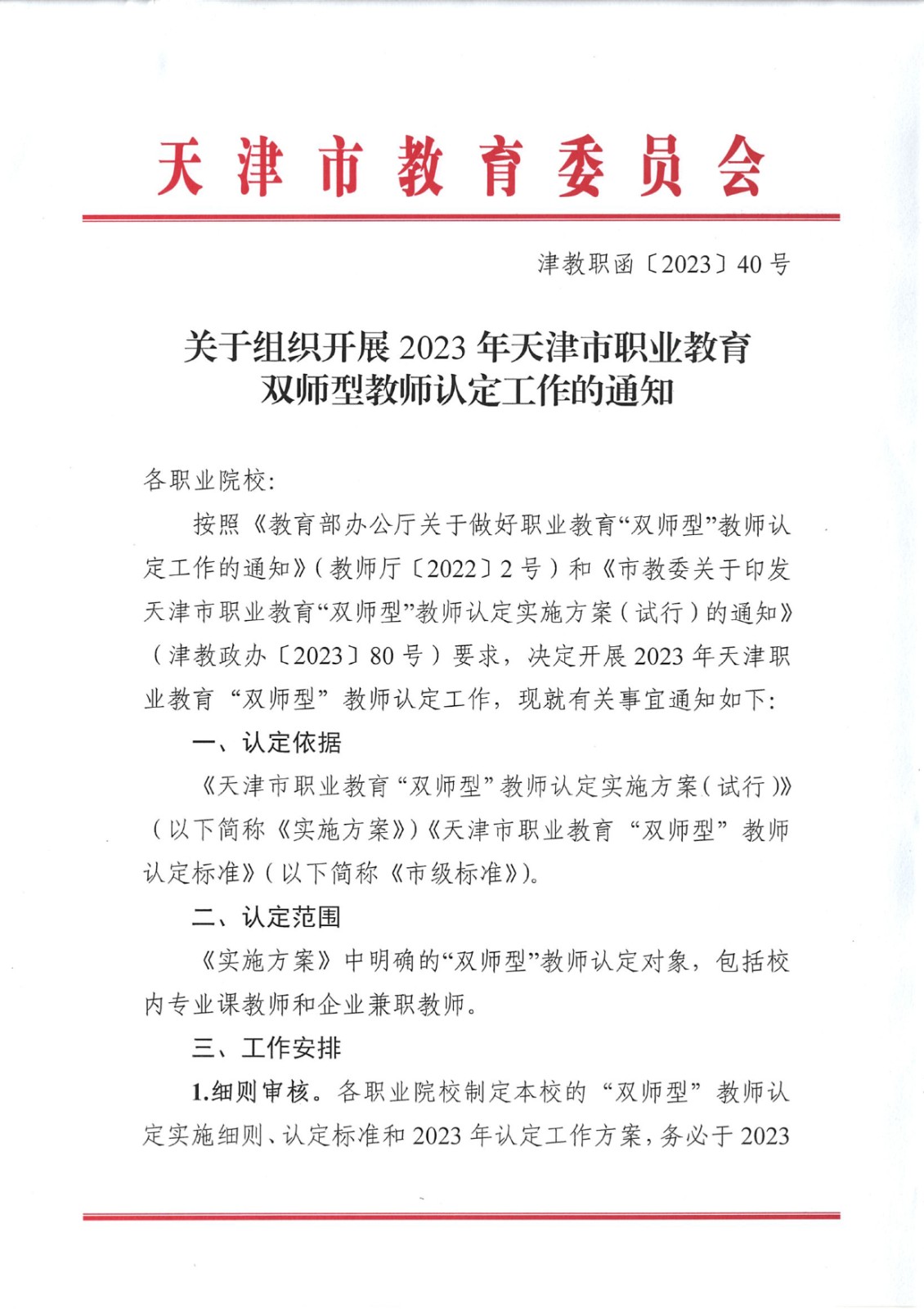 关于组织开展2023年天津市职业教育双师型教师认定工作的通知