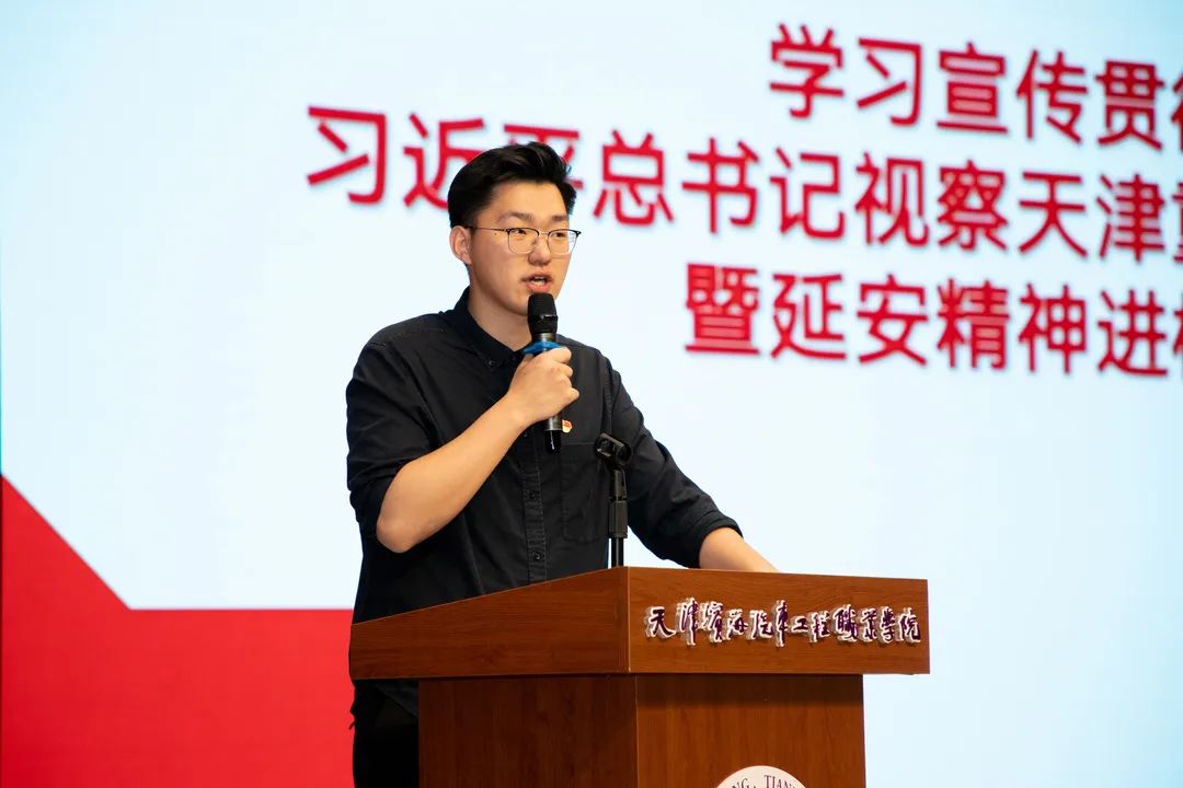 活动由校团委副书记于天夫主持。他首先向大家介绍了本次活动的意义、目的和具体流程,并在授课环节先后分享了学习“习近平总书记视察天津重要讲话精神”的学习成果以及参加“百万学子回延安”主题研学活动的心得体会。在分享延安研学之旅的心得体会时,校团委副书记于天夫将自己代入了梁家河的老书记石春阳的视角,以老书记石春阳的身份分享了青年时期的习近平总书记在梁家河的工作和生活经历,帮助大家了解领袖一路走来的奋斗历程,激励大家树立为实现中华民族伟大复兴奋勇前进奋斗目标。