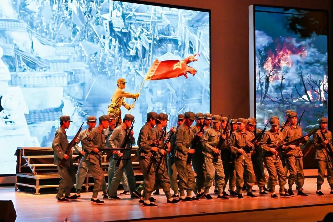 歌舞剧《以青春致青春》以穿越时空的对话为主线,观众跟随一本日记,从五四运动到抗日战争,从女排精神到中国军魂,中国青年在每个历史节点都发挥着不可忽视的磅礴力量。