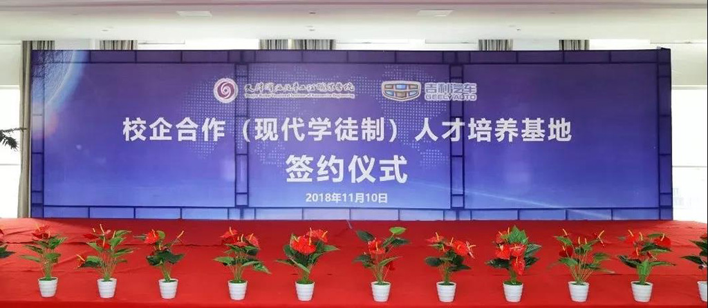 11月10日,我院与浙江吉利汽车销售有限公司校企合作(现代学徒制)人才培养基地签约仪式在我院举行。